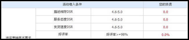 2.DSR評分為提示為0,無法報名任何活動(含聚劃算、淘金幣)?