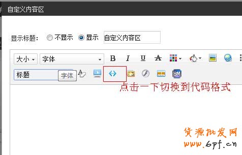 第四步,將復制的代碼,黏貼到剛才的“自定義區(qū)域”,然后再點擊一下“代碼圖標”,可以先看看效果,然后點擊“確定”。