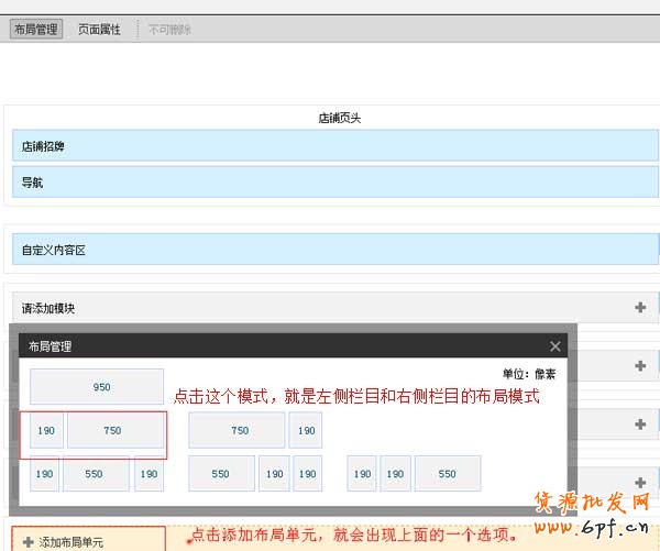 注意,很多新手,對于左側(cè)欄目,右側(cè)欄目如何添加自定義不明白。這個問題其實不難理解。你要在布局的時候,建立一個190+750模式的布局就行了。