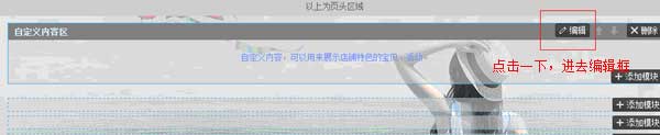 店招和導航條這個是系統(tǒng)設置的,你只需要進行編輯就可以了。我們就看看下面的模塊如何添加自定義區(qū)域,如何將裝修代碼黏貼進去。