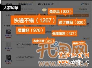 一正品.、“質蘭可篇,、“服務好.這些評價可以用“大家印象”的方式呈現在評價詳情中。口碑直接轉變為銷量,根據店主統計,由于大家印象中的口碑較好,使得店鋪在8月份的一款防曬產品銷量高于同行。