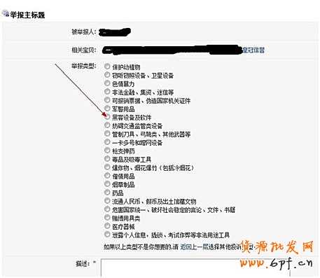 點擊舉報后進(jìn)入后,會進(jìn)入到下圖顯示的頁面: