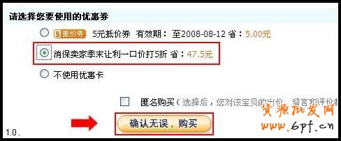 5、點擊“立即購買”后,您可以在確認購買信息頁面查看到折扣價,選擇使用相應優惠券,點擊“確認無誤,購買”即可: