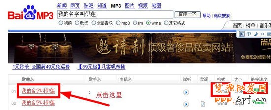 這樣利用百度mp3就可以把歌曲“我的名字叫伊蓮”的歌曲地址就找到了。其地址是http://zjp.tfol.com/ck/down/elle.wma
