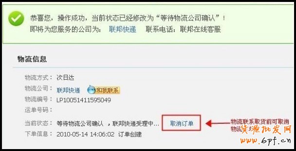 選擇相應的推薦物流點擊“選擇”即可在網(wǎng)上下單后再等物流公司取貨,在網(wǎng)上下單后物流取貨前也可取消物流訂單。