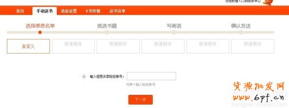 點擊“手動送書”,輸入您需要贈送買家旺旺id,點擊“下一步”,選擇要送出的電子書