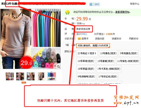 2、設置賣家承擔運費,描述說明局部地區才包郵。