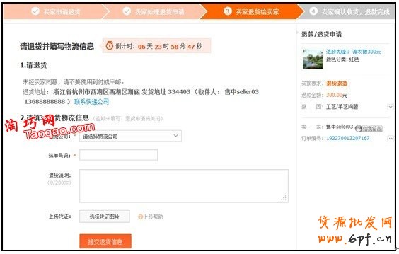 第二步:填寫正確的退貨物流信息,查看如何填寫退貨信息;