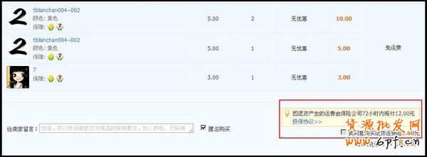 2) 通過” 購物車”方式購買時,在購物車內選擇購買“退貨運費險”,如下圖: