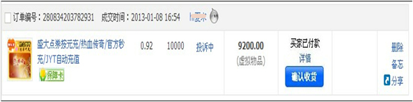 虛擬物品往往就是為了換好評,一般的賣家都會催著你要好評,但是如果你第一次和這個賣家合作,一次的交易額又不是很小,那就不要著急好評,怎么也要等半個月甚至一個月,看看你的虛擬物品是不是一直完好才行。很多JS在你好評以后,出了問題就避而不見。你的慎重好評不僅對于你自己。對于以后的買家也是負責任的表現!