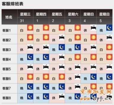 提前排班:人員排班的安排,排班表要提前準(zhǔn)備好,班次不宜太過分散,兩到三個(gè)班次即可,預(yù)計(jì)顧客平時(shí)咨詢高峰期判定早晚班的人數(shù)比例。后備人員的安排也是必要的,例如售后工作量的延后性可以臨時(shí)征調(diào)為機(jī)動(dòng)班次進(jìn)行補(bǔ)充。生意太好的話,還可以臨時(shí)招聘一批臨時(shí)客服,提前培訓(xùn)上崗。(子旺旺也要備足)