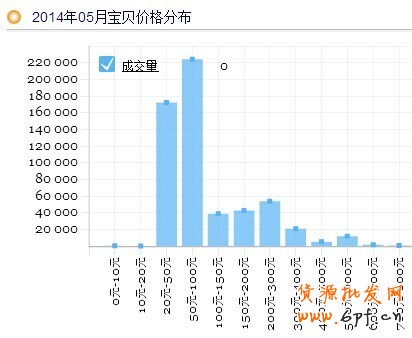 上圖是2014年05月寶貝銷量價格柱形圖。
