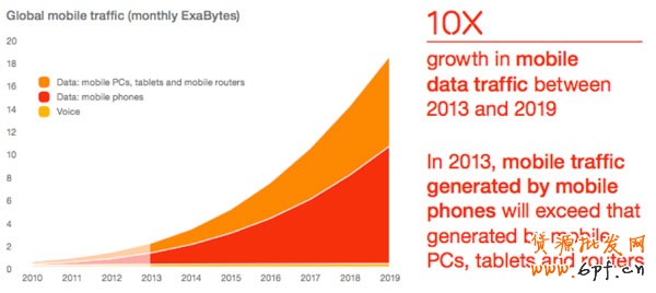 近日根據Ericsson Mobility 的報告稱,在2013年到2019年間,移動端的流量將會每年增長45%,也就是說到了2019年移動端的流量會是如今的10倍。