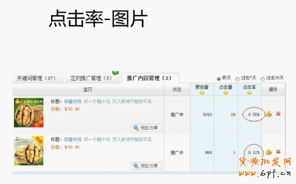 2、直通車圖片:不斷修改直通車主圖,可以提高點擊,如下圖,對于點擊率低的圖片,要做優化