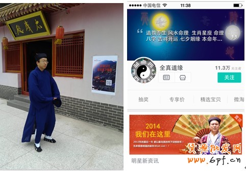 這一年,有一位來(lái)自陜西終南山子午峪金仙觀的道長(zhǎng),找到的移動(dòng)互聯(lián)網(wǎng)載體是微淘。道長(zhǎng)自稱“千古逍遙客”,開(kāi)通了微淘“全真道緣”。