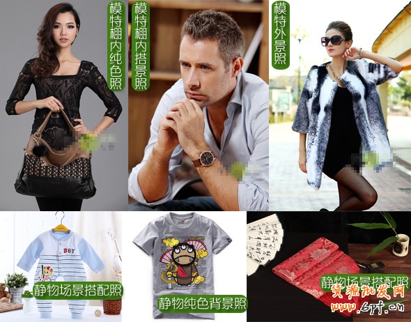 如今淘寶產品圖片大致分為:模特攝影棚內純色背景照、模特棚內搭景照、模特外景照、靜物純色背景照、靜物場景搭配照等