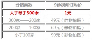 本次特惠活動,針對不同分銷商數(shù)品牌商,拍攝制作9秒主圖視頻制作商收取價格參考表;