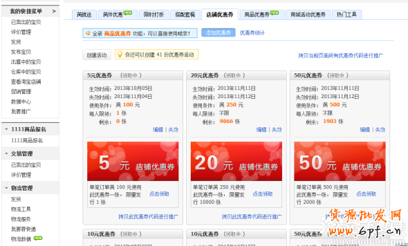 第二步:進入創建店鋪優惠劵(根據不同賣家店鋪活動,創建不同優惠劵)