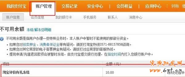 4、每一個評論有禮活動發(fā)獎對應(yīng)的資金情況可以在賬戶凍結(jié)/解凍明細中查看: