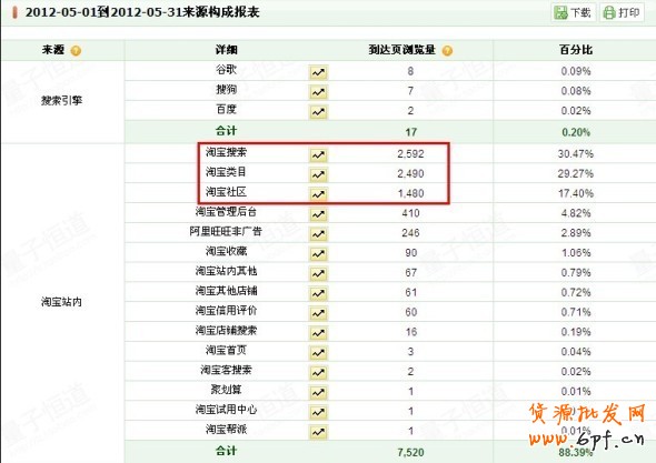 不難看出,流量來源的前三甲分別是:淘寶搜索、淘寶社區、淘寶類目。