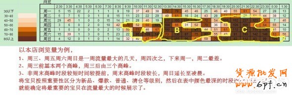 然后將新品和熱銷下架時間安排在周三或者周末的三個高峰時段,依次將其他類寶貝安排在其他時間。