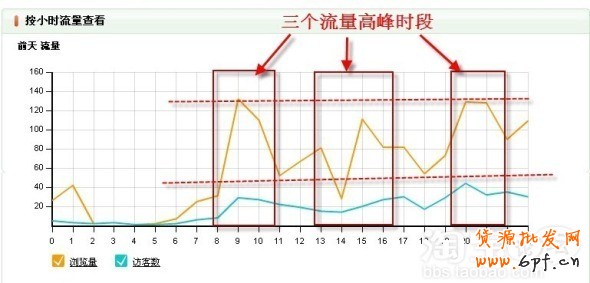 量子統(tǒng)計左側有一個“按小時流量分析”為我們提供了了解自己小店流量分布的一個好工具,他是精確到小時來計的。