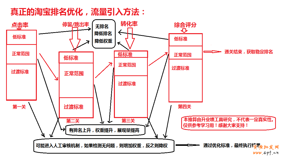 最近淘寶排名不斷的改變規(guī)則,但最終萬變不離其宗。為了更簡單讓大家了解,我們可以想象成一場過關游戲。關于排名的有:點擊率,跳出率,轉化率,綜合評分(描述情況,發(fā)貨速度,客服服務..)因素很大。這些名詞大家都懂吧?不懂的可以百度。