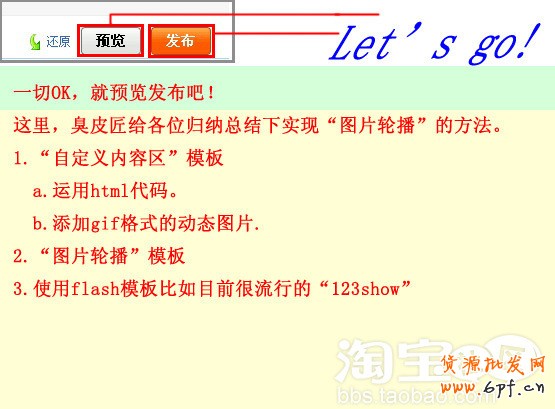 本文來源: 淘寶店鋪裝修-圖片輪播制作教程!無需代碼和做圖