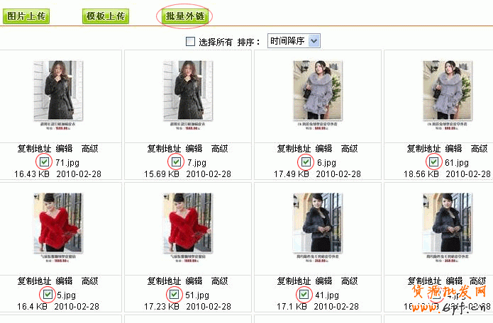 第3步:貼圖:在相冊(cè)里,勾選圖片。再點(diǎn)批量外鏈。如圖所示: