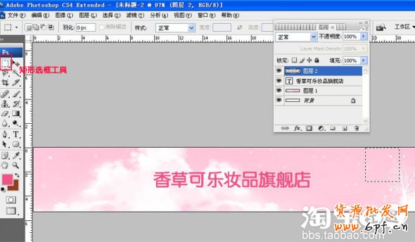 5. 【窗口】——【圖層】——【創建新圖層】,【工具欄】——【矩形選框工具】,按著SHIFT鍵在合適位置拉出一個正方形的選筐。