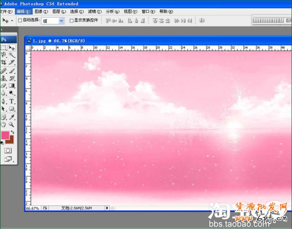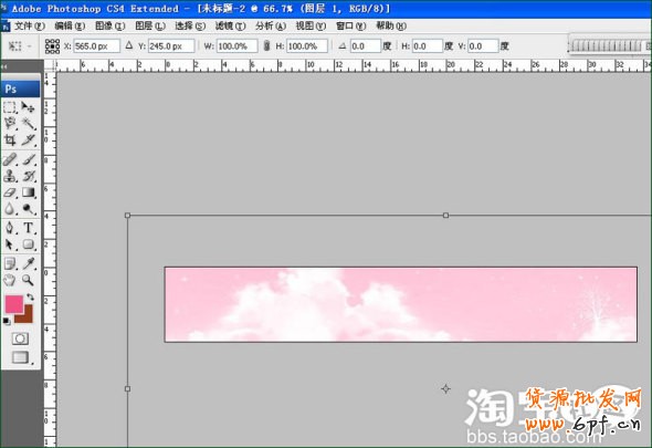 3. 在素材1中按CTRL+A全選,用移動工具拖至新建的文檔2,按CTRL+T放大縮小移動位置作調整,直到滿意為止,背景就做好了。
