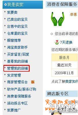 2、點擊上圖紅框處的“管理我的店鋪”,則出現(xiàn)下圖所示內(nèi)容: