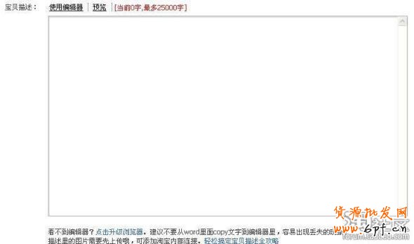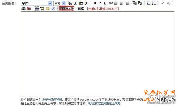 3、清空寶貝描述編輯器里的內容(針對修改寶貝而言,如果是新發(fā)布寶貝就不存在清空了)。
