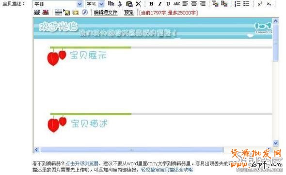 本文來源: 旺鋪裝修攻略(10):寶貝描述模板使用教程