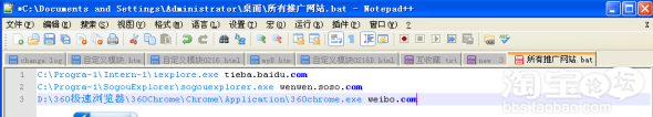 如果瀏覽器沒(méi)有打開收藏夾中文件夾所有鏈接的功能,就只好用記事本編輯如下圖內(nèi)容,最后改名為XXX點(diǎn)BAT。雙擊就全打開了。