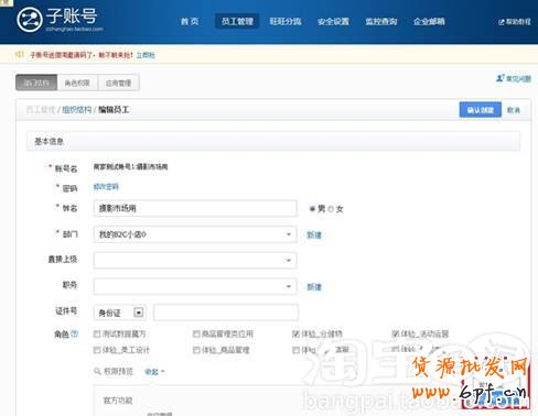 2、主賬號登陸子賬號后臺—員工管理—補(bǔ)充權(quán)限,授權(quán)使用千牛插件。