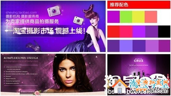 棕色和金色黑色搭配,會有高貴、經典的沉淀感。這種配色方法,我們經常可以在各種奢侈品站點和VIP平臺上看到;棕色和白色會讓人感覺更沉穩莊重一些,產生相對舒適柔軟的感覺;而淡棕色和黃色、橙色搭配,會有比較生活化,也會有高端大牌的感覺。后面這兩種配色方式,適用于做家紡、家居搭配的賣家。