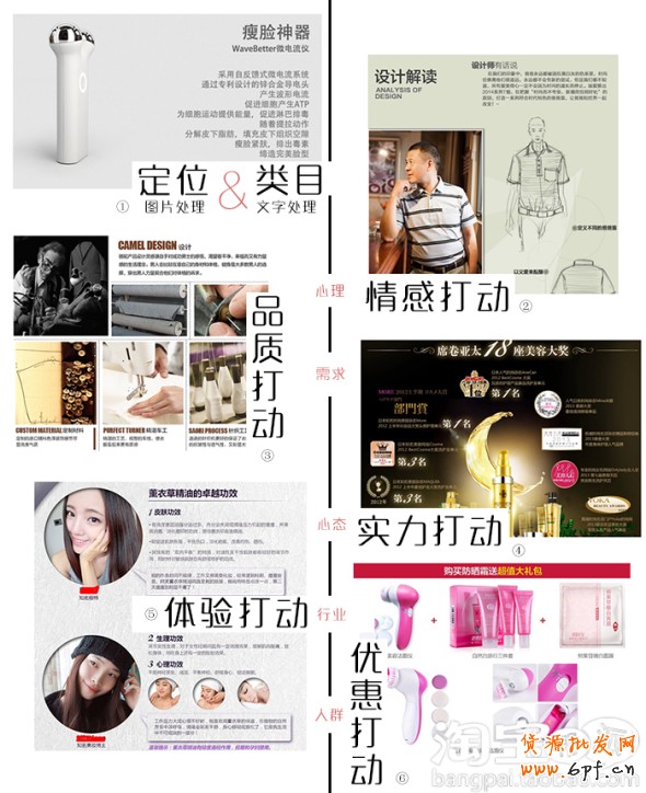 成功的表現各不相同,都是通過各種點去趨利避害,但成功的原因只有一個,了解顧客購買心理。無線詳情頁的制作過程有6個步驟——