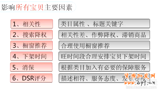 6、是DSR評(píng)分, 就是寶貝描述, 店鋪質(zhì)量, 發(fā)貨速度等一系列的因素。