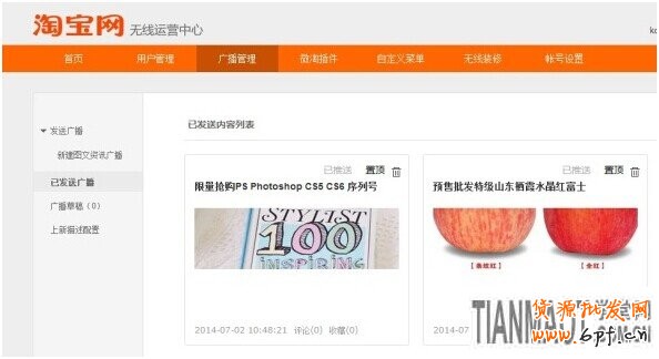 (1)進(jìn)入淘寶無(wú)線運(yùn)營(yíng)中心,進(jìn)入“廣播管理”