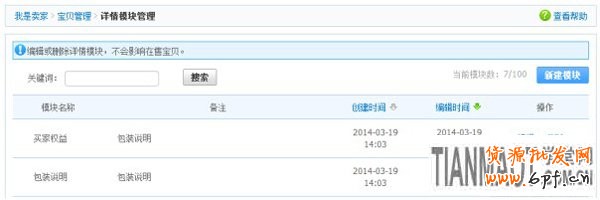 5、若不需要修改,則可以關閉當前網頁窗口,回到步驟3詳情模塊管理頁面,新建的模塊會出現在模塊管理列表內: