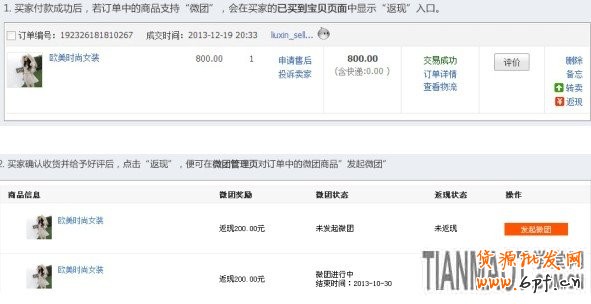 參團人享受的折扣是通過發(fā)放微團專用的寶貝優(yōu)惠券的方式實現(xiàn)的,設(shè)置金額不能高于商品最低價格的一半。發(fā)起人返利金額與參團人優(yōu)惠券金額一致,不需要填寫。點擊創(chuàng)建后,即可發(fā)布成功。