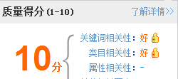 因此,質量得分是關鍵詞的搜索匹配相關度的綜合指數,當買家搜索關鍵詞時,匹配相關度越高的寶貝質量得分越高,反之則越低。在關鍵詞出價相同的情況下,質量得分越高,排名越靠前。推廣展示費用越低。