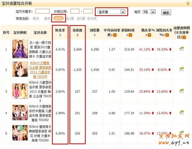 親子類目不如連衣裙類目火爆,可以選擇轉化率比較高的幾款寶貝進行測試。