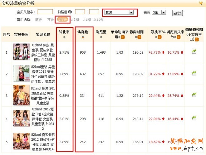 第一款第二款都是流量很高的,可以重點觀察一下后面三款的情況,而且從目前的數據來看,這三款都有黑馬寶貝的特征。