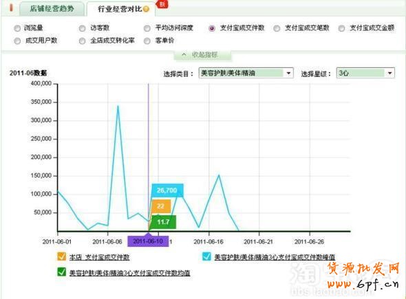 ⒋在這里,你可以根據自己的需要,來查看你想查看的整個行業的各種數據。包括:瀏覽量、訪客數、平均訪問深度、支付寶成交件數、支付寶成交筆數、支付寶成交金額、成交用戶數、全店成交轉化率和客單價。