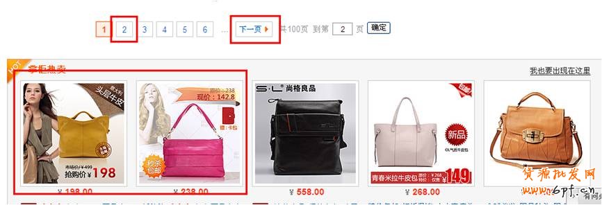 當我輸入“糖果色 女包”第一頁最下面的位置出現這樣五款包包。