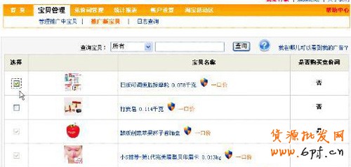 然后,選中您要推廣的新寶貝,點(diǎn)擊寶貝左邊的方框。