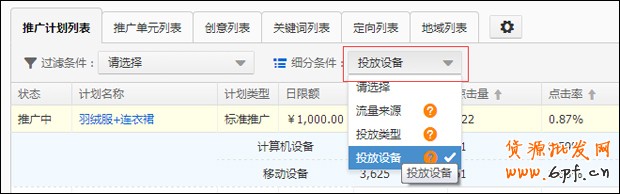 由于移動端直通車展現(xiàn)的位置特殊導致點擊率一般要比PC端高好幾倍,你可以在實時數(shù)據(jù)查看當天的移動端投放情況,或在下圖位置查看歷史投放數(shù)據(jù)。不要看到某個計劃的點擊率這么高,怎么質(zhì)量得分還是起不來,先去看下點擊率是不是靠移動端拉起來的,再看下PC端的實際點擊率。