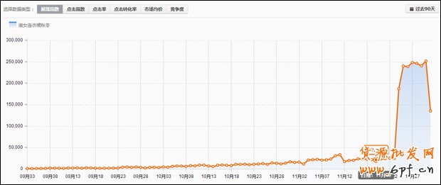 比如一件毛衣,它的主關(guān)鍵詞可以是針織衫,也可以是毛衣。那接下來我們想推廣這個寶貝,應該如何加詞呢?我的建議是,保持主推詞的一致性,我們把這二個詞放到流量解析里對比一下就可以看出,針織衫的展現(xiàn)指數(shù)和點擊率都遠高于毛衣,但毛衣的點擊轉(zhuǎn)化率略高手針織衫,這種情況我們肯定選針織衫為主推詞。